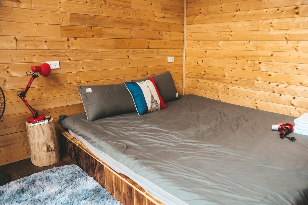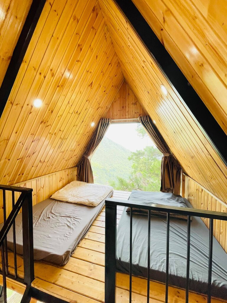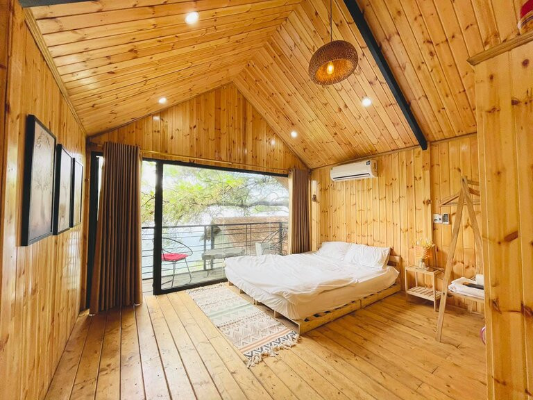 Nhà áp mái gồm 2 tầng với 1 phòng ngủ giường đôi và 1 áp mái giường đôi kèm thêm 3 nệm phụ cho các nhóm bạn đi đông.