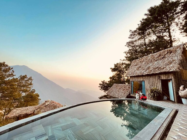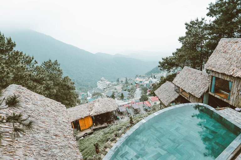 Nhà Mông Cổ thiết kế độc đáo theo concept mông cổ với các chi tiết thổ cẩm vừa gần gũi, mộc mạc nhưng lại vô cùng trẻ trung và bắt nhịp xu hướng, cửa sổ kính sát trần với view bể bơi và thung lũng Tam Đảo.