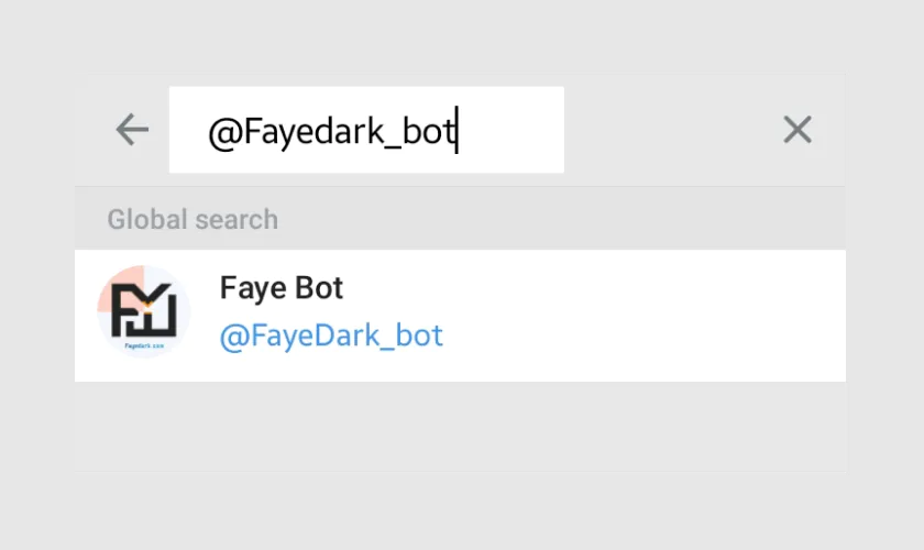 Nhấp vào biểu tượng kính lúp để tìm kiếm trên Telegram. Sau đó nhập @fayedark_bot