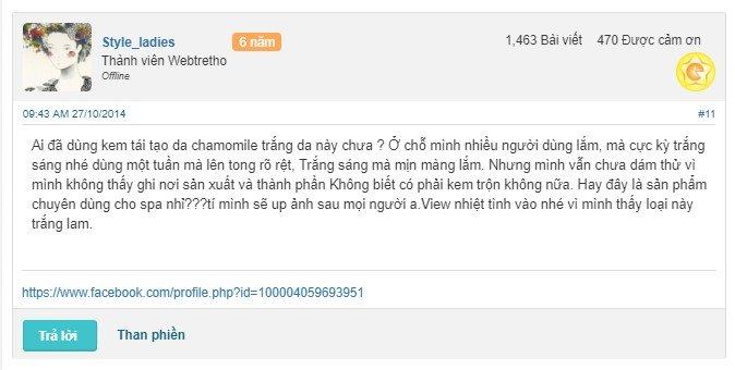 Để giúp Các bạn có cái nhìn rõ nét hơn về sản phẩm Chamomile Whitening Cream này. Chúng ta hãy cùng tham khảo một số quan niệm Nhận định trực tiếp của người mua chia sẻ về chiếc mỹ phẩm này nhé