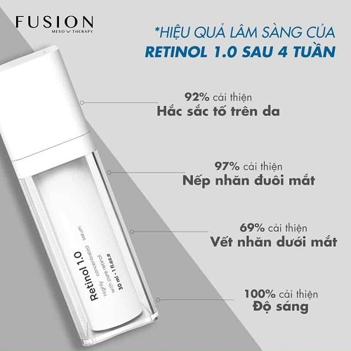 • Retinol 1.0 của Fusion giúp giảm nhanh nếp nhăn, vết nám, tàn nhang, thâm mụn, giúp trẻ hóa làn da.