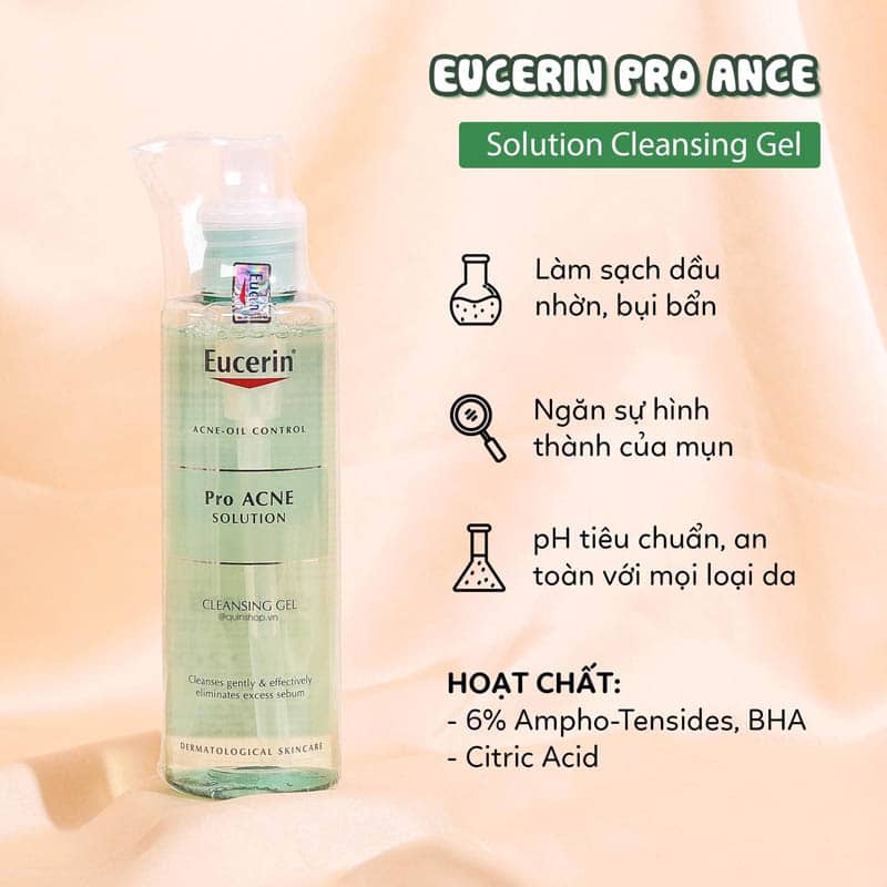 Vốn nổi tiếng với các sản phẩm trị mụn nên việc sữa rửa mặt trị mụn của Eucerin được yêu thích là điều đương nhiên. Một số sản phẩm sữa rửa mặt trị mụn được đánh giá cao của hãng như ProAcne Solution Cleansing Gel sẽ rất thích hợp để bạn gái sử dụng hỗ trợ trong quá trình trị mụn của mình.