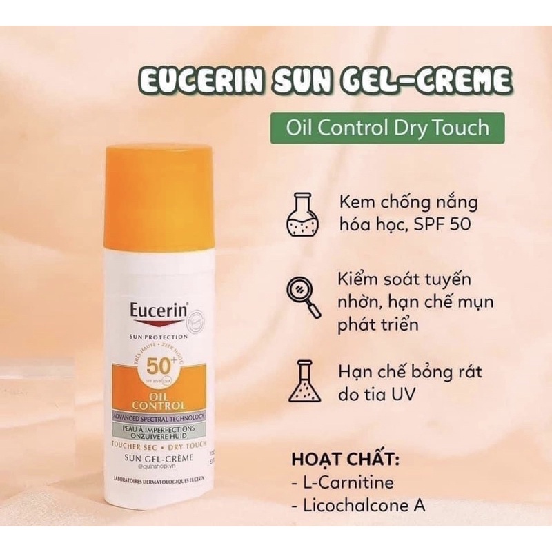 Eucerin Sun Gel Cream Oil Control là kem chống nắng hóa học, nên bạn cần bôi kem chống nắng tối thiểu 20 phút trước khi ra ngoài.