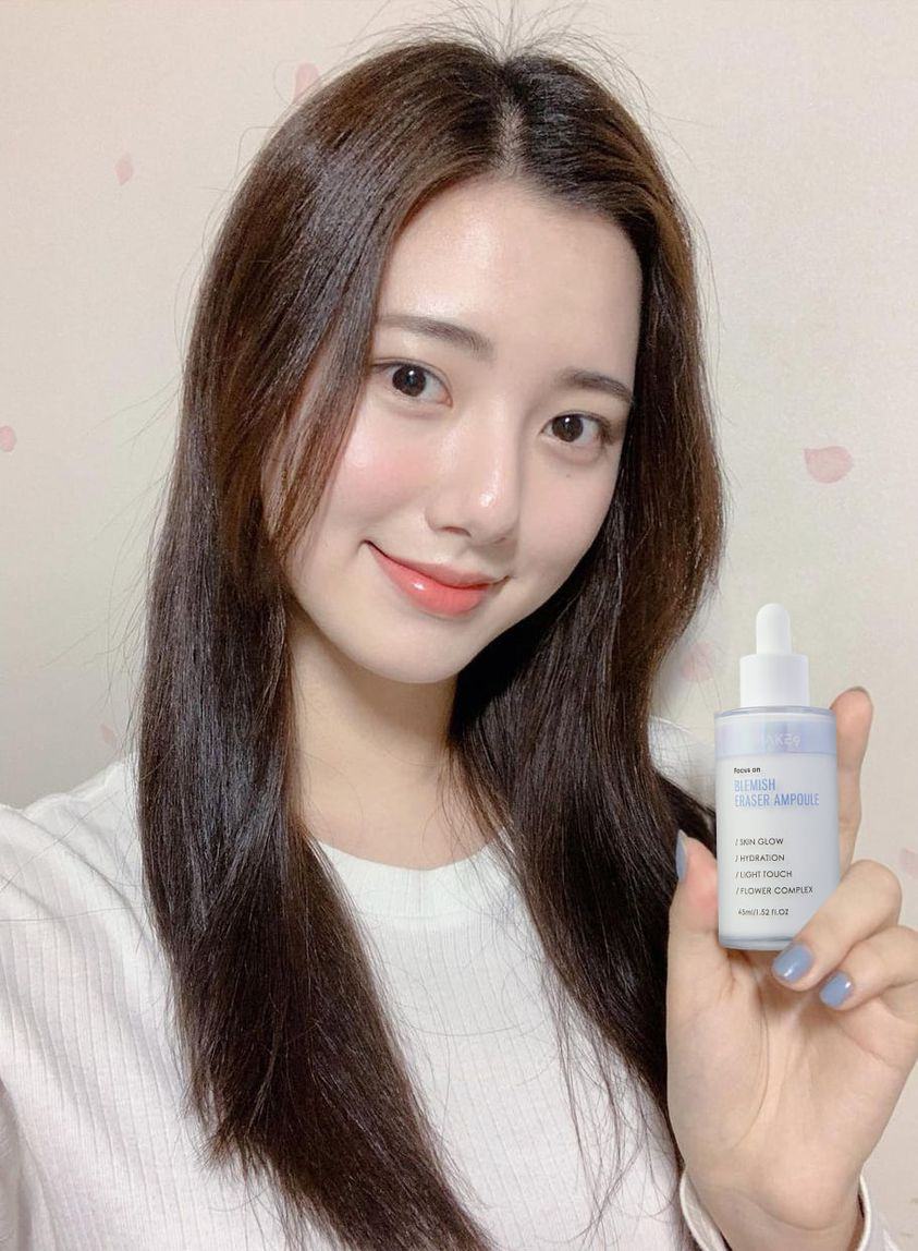 – Thứ 2 là chất ampoule không đặc quá, màu trắng đục. Mỗi lần dùng mình cho ra khoảng 4-5 giọt, rồi táp táp lên mặt. Thấm cực nhanh, không bị dính dính như mấy loại serum khác. Nhiều lúc còn không nhớ là bôi hay chưa cơ.
