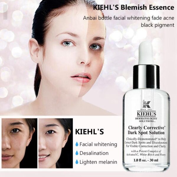 Kiehl’s là một thương hiệu nổi tiếng từ Mỹ, bên cạnh các dòng sản phẩm như mặt nạ đất sét, serum trị mụn, trị thâm còn có serum dưỡng trắng da tuyệt vời đối với các chị em phụ nữ. Sản phẩm này phù hợp với mọi loại da, đặc biệt những bạn đang cần cải thiện làn da không đều màu của mình hoặc bị nám nhẹ, bị thâm do mụn gây ra.Clearly Corrective™ Dark Spot Solution được chiết xuất từ Vitamin C, hoa mẫu đơn và bạch dương trắng giúp chống lại quá trình lão hóa da, hạn chế thâm nám, chống viêm nhiễm da và giảm vết sẹo trên da.