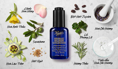 Serum phục hồi tái tạo da ban đêm Kiehl’s Midnight Recovery Concentrate – Serum tái tạo da trị mụn