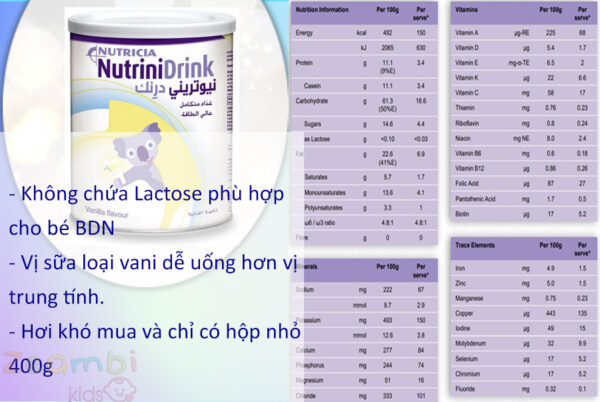 Các thành phần đặc biệt có trong sữa Nutrinidrink bao gồm: